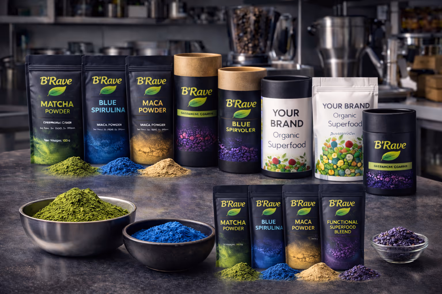 B’Rave Superfoods is a UAE-based B2B supplier of high-quality matcha, maca, spirulina, and functional blends — trusted by cafés, HoReCa, food manufacturers, and distributors.